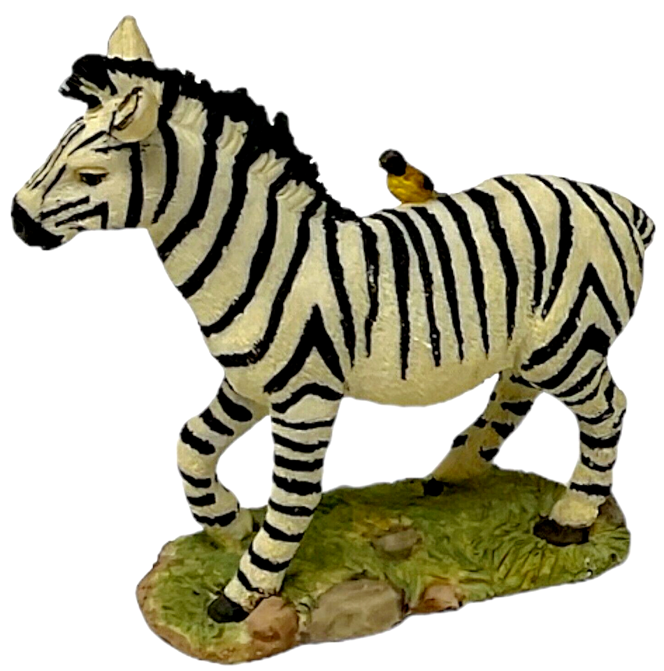 1996 Enesco Co Safari Wonders Collection Zebra With Bird Resin Figurine #268852 - 3" x 3.5".