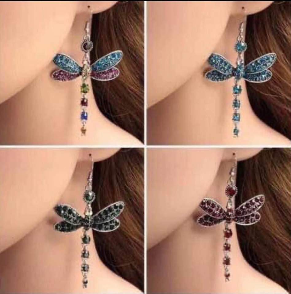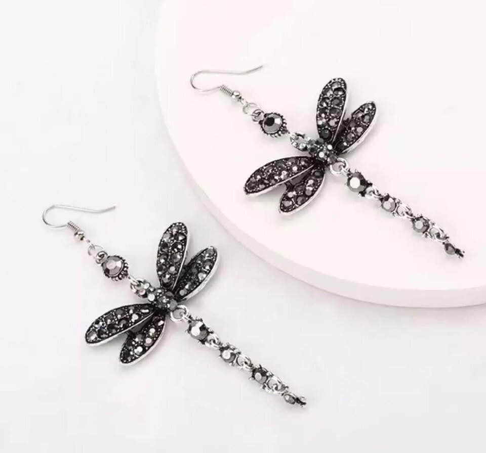 New Absolutely Stunning Black Rhinestone Dragonfly Earrings Shimmers & Sparkles