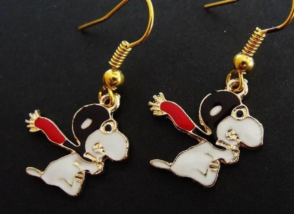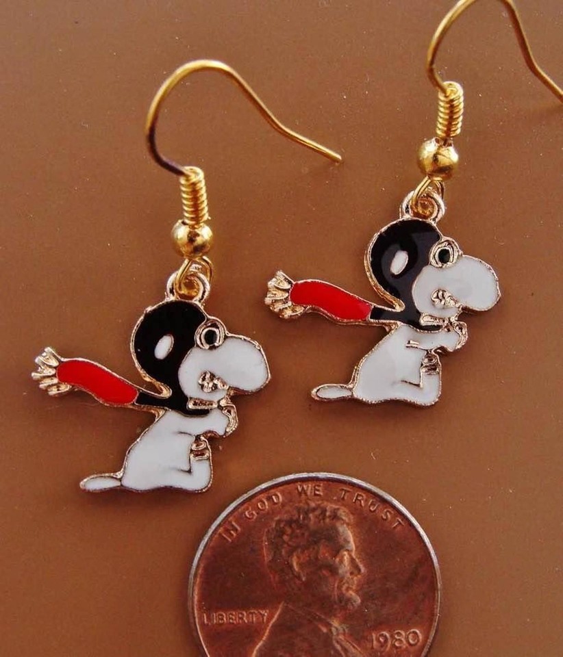 New Super Cute Snoopy Red Baron Flying Enamel Earrings
