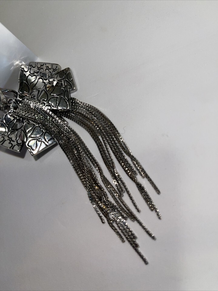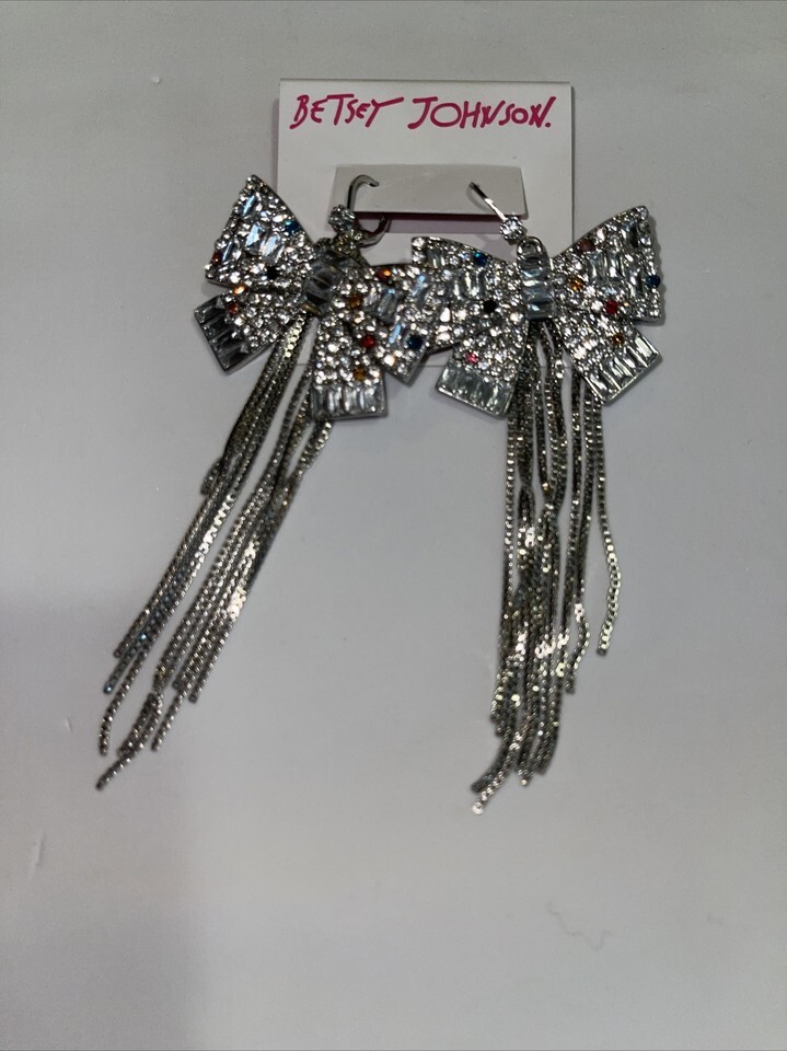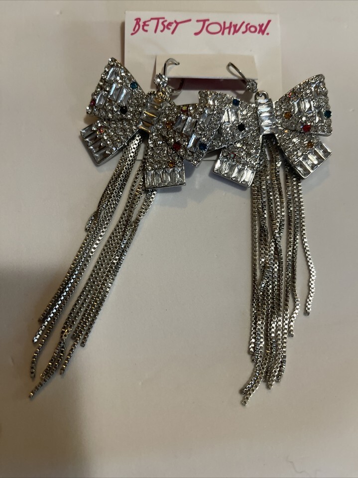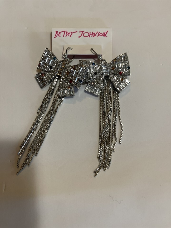 Betsey Johnson POP HEART BOW FRINGE EARRINGS new