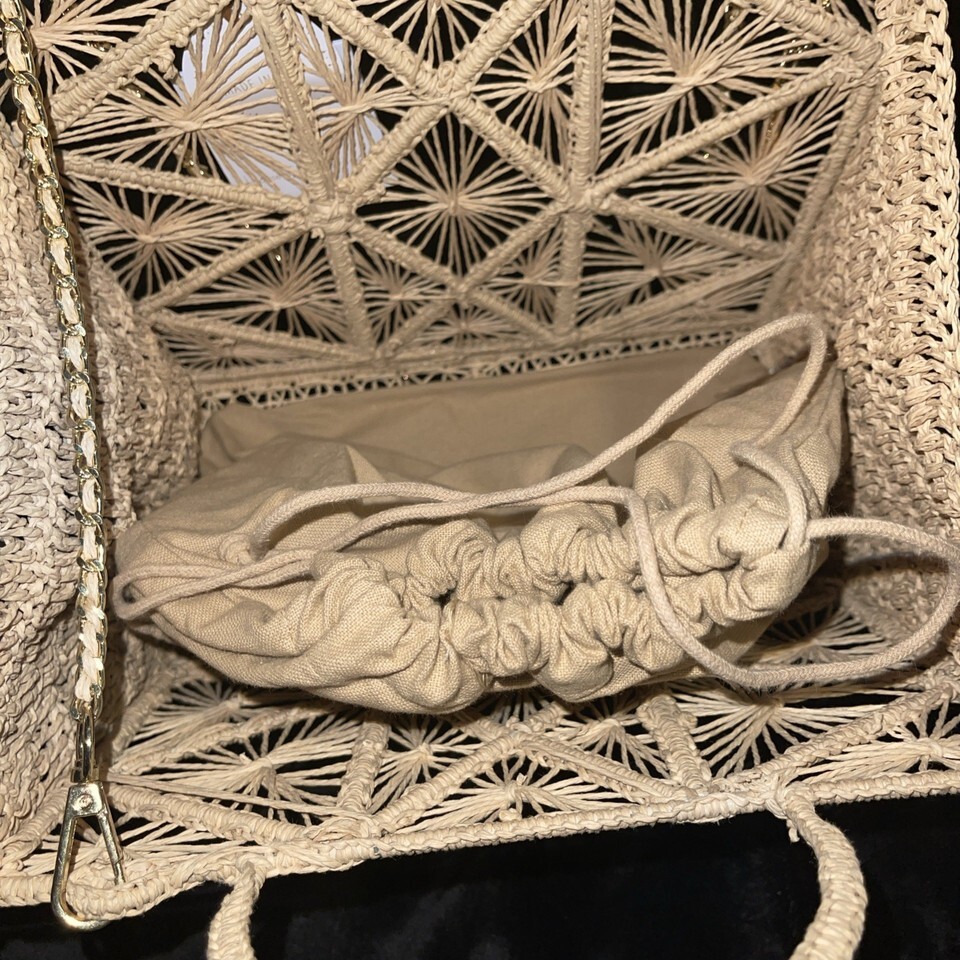 House Of Harlow 1960 Hand Woven Raffia Hand Bag Purse Gold Crossbody Strap NEW