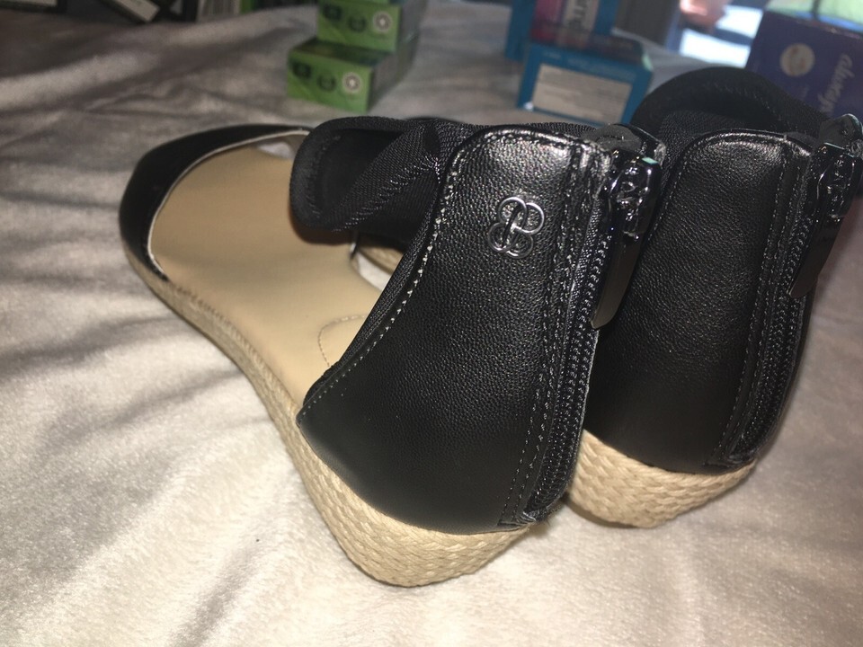 Bandolino Wedge Sandals SIDNEY Open Toe Casual Ankle Strap BLACK SZ 9 NEW