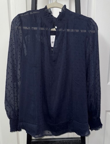 Hayden Kennedy BLUE multi SHEER Blouse Long Sleeve new Size XSMALL