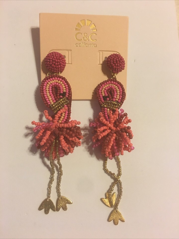 C&C California Beaded Flamingo Earrings new