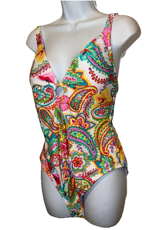 Blue Rod Beattie One piece multicolor swimsuit size 14 NEW