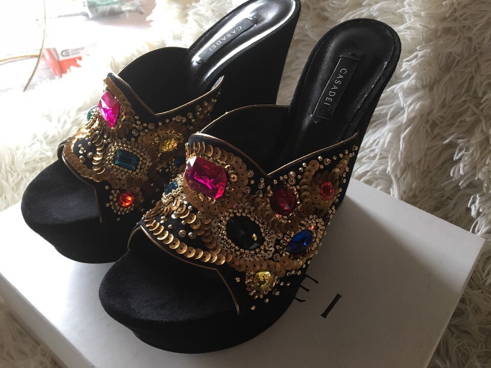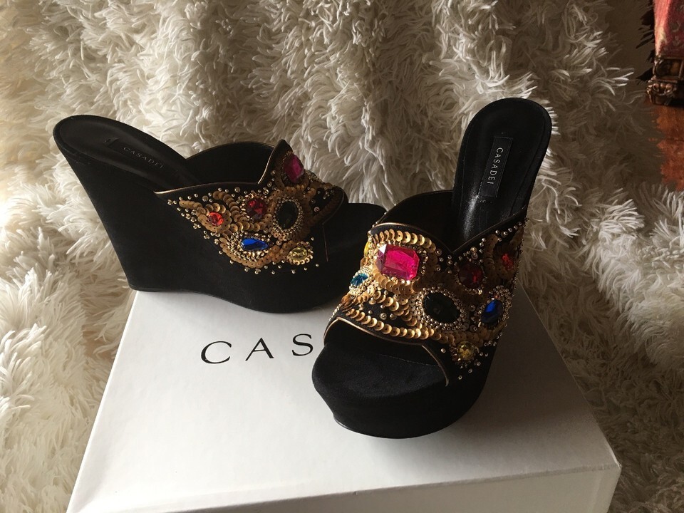 Casadei Women's 140mm Swarovski & Sequin Suede Wedges SZ 41 US 10 NEW