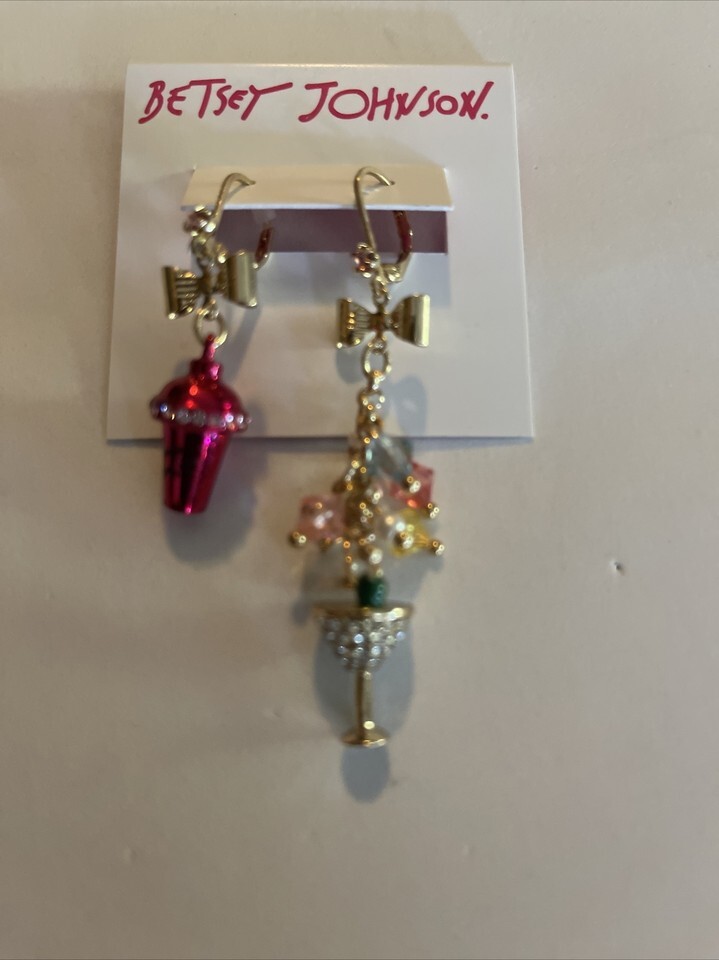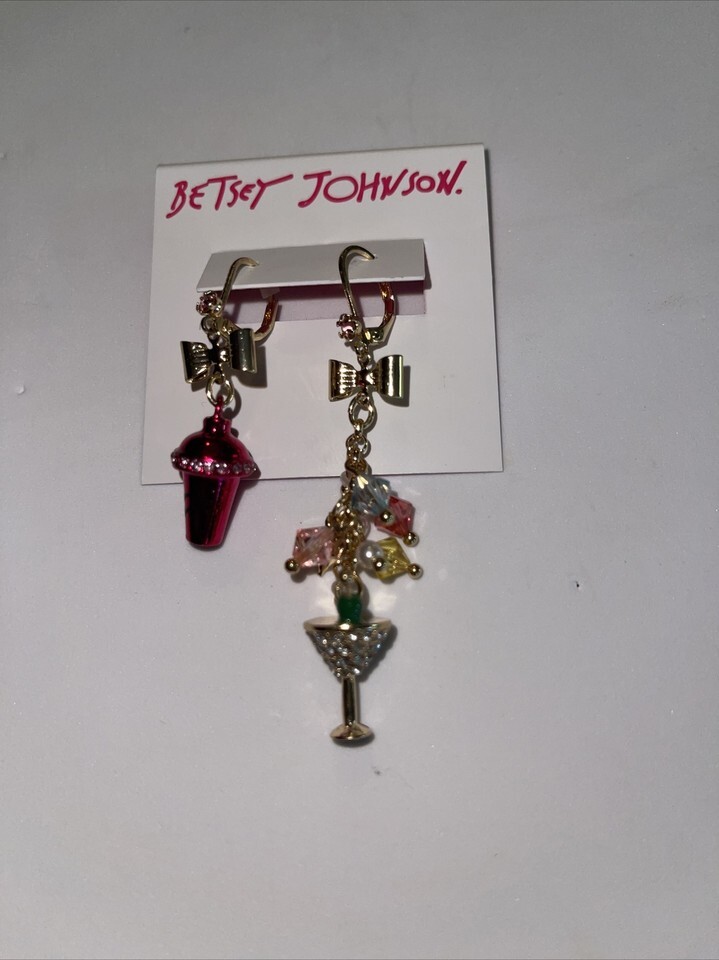 Betsey Johnson Mix Match Martini & Shaker Drop Earrings new