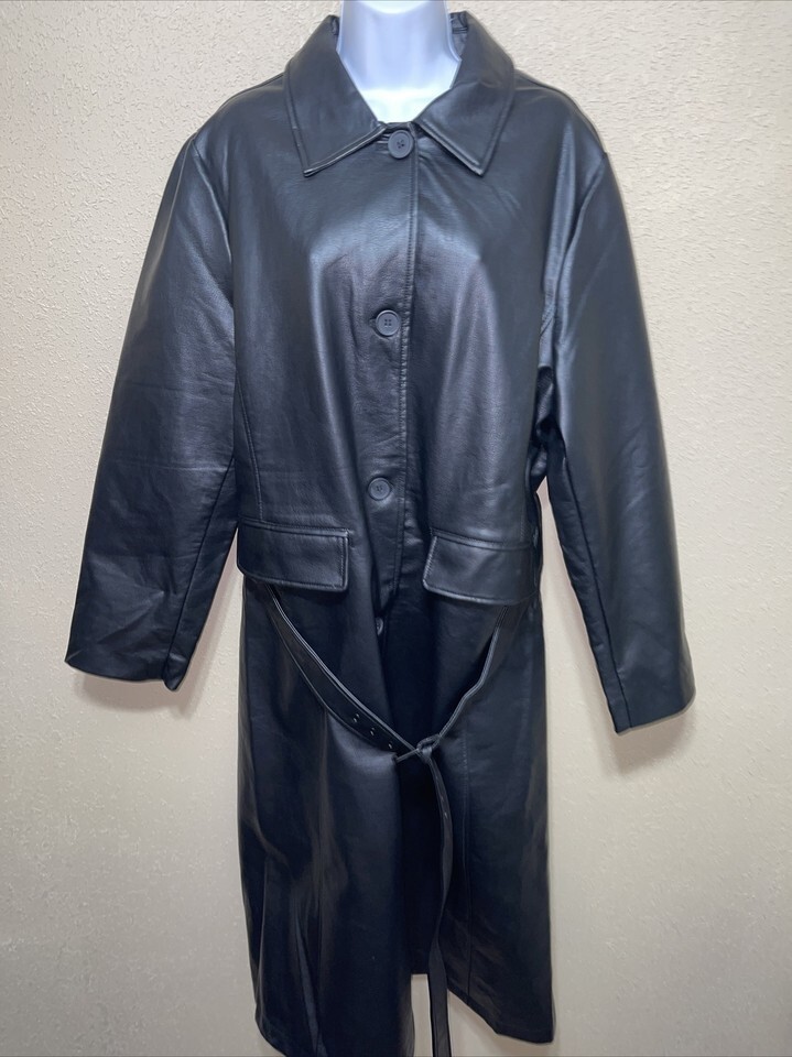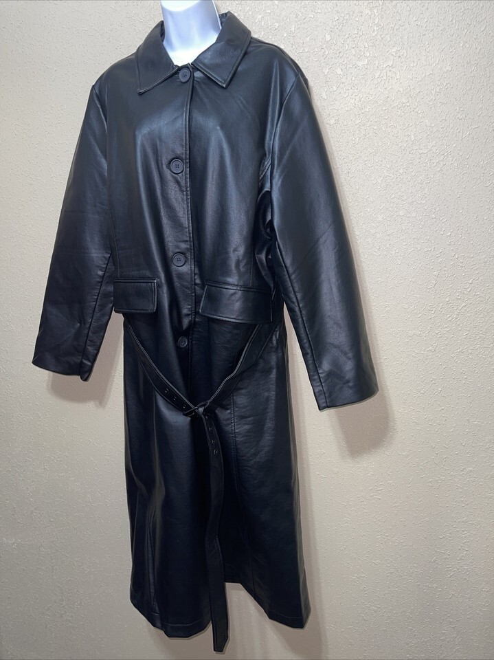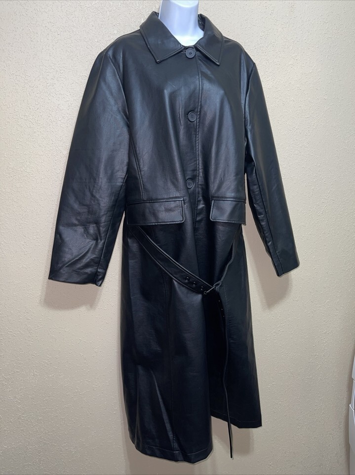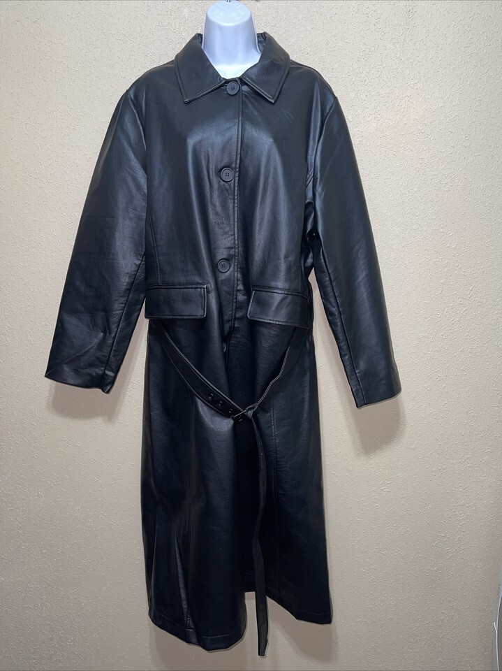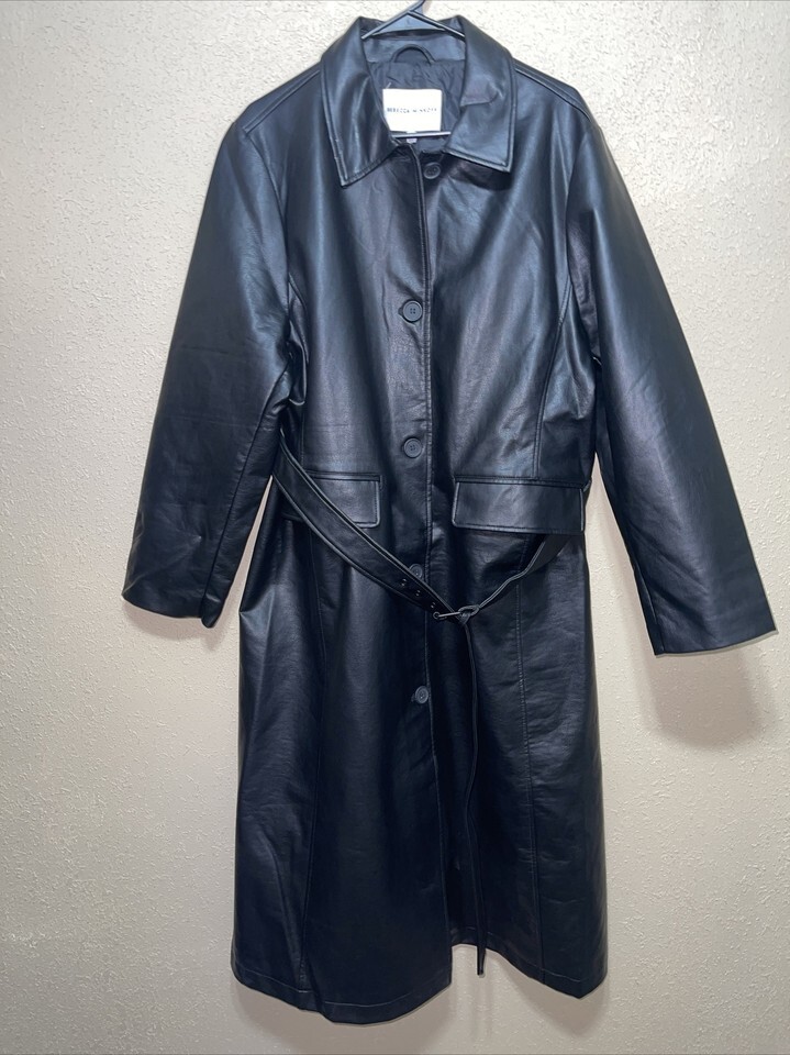 Rebecca Minkoff Faux Leather Belted Trench Coat sz XL NEW