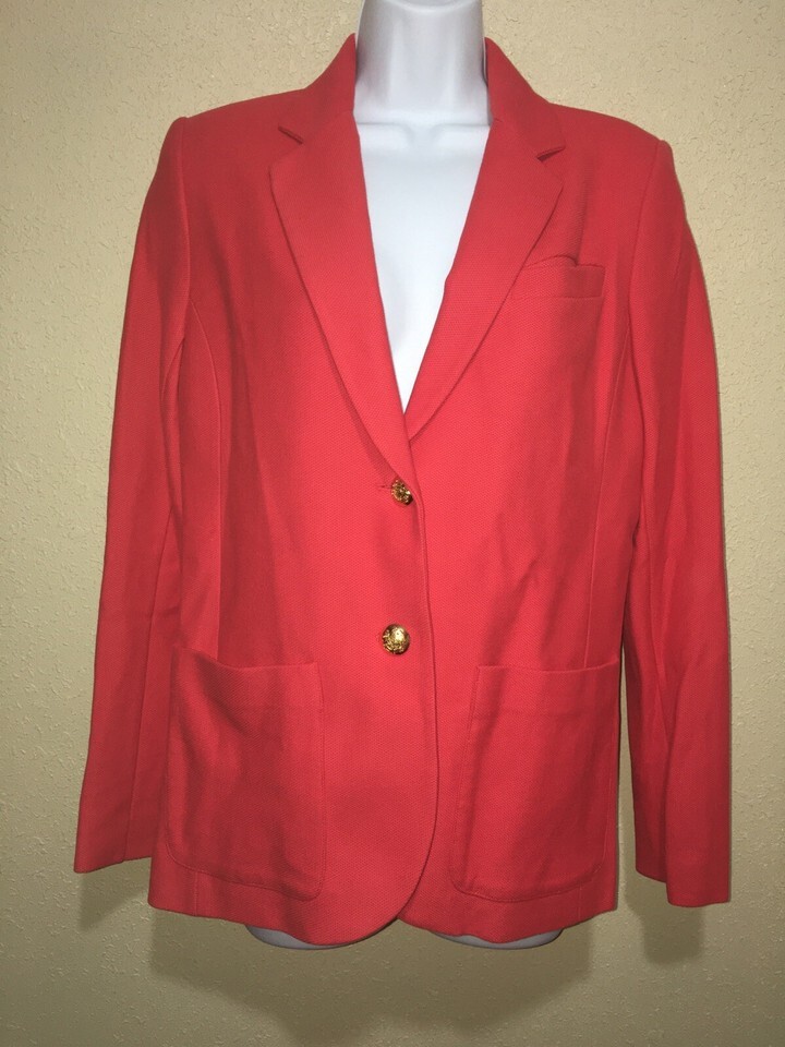 Ralph Lauren Textured Knit Cotton Blazer Jacket Red Gold Buttons sz S new