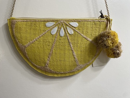 Isaac Mizrahi Straw Browns Yellow Shell Chain Crossbody/clutch NWT