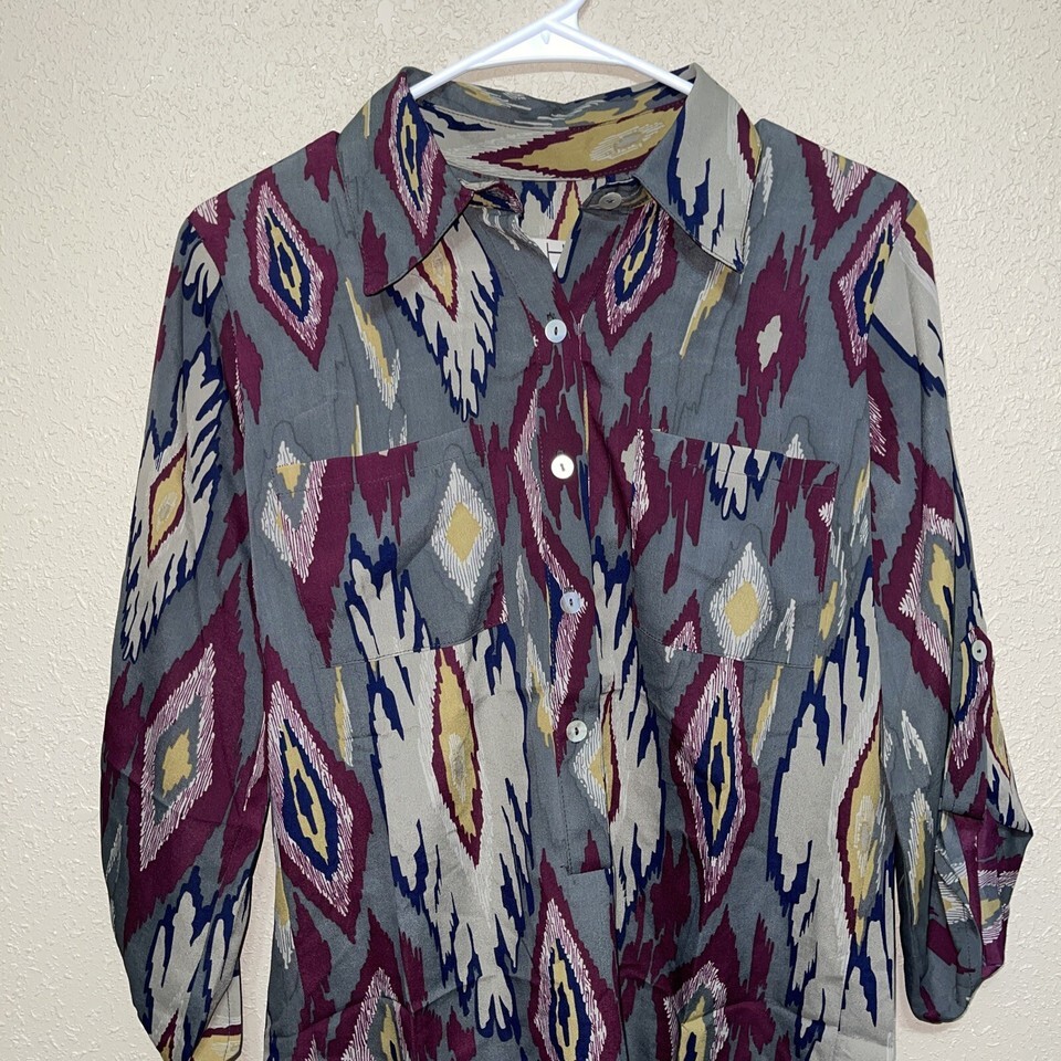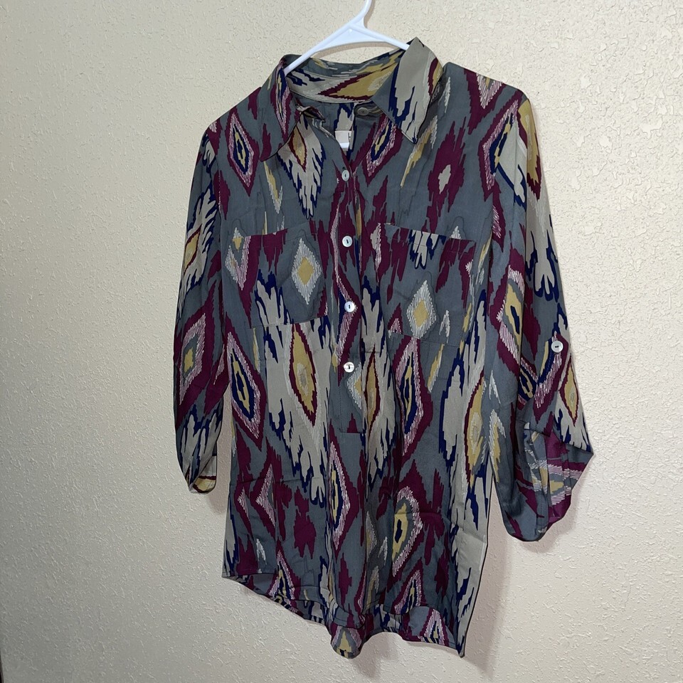 Hayden Kennedy SHEER Blouse green multi Long Sleeve new Size M