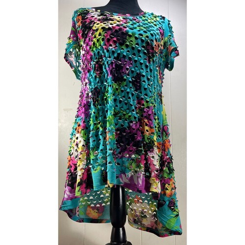 ADORE DARK GREEN laser cut multi color Dress Sz M NEW