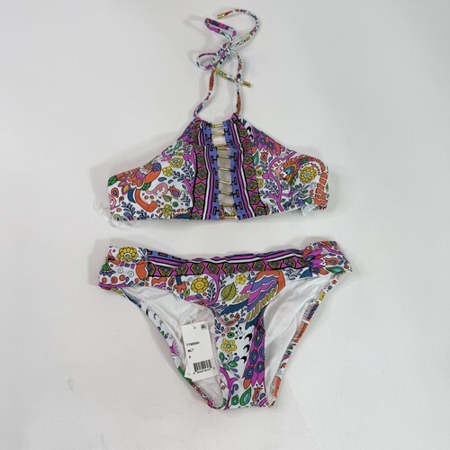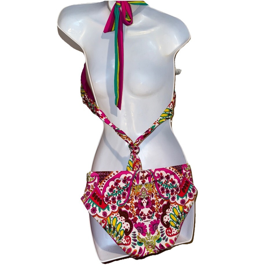 Trina Turk Two-Piece Bikini Set Hawaiian Garden Print Halter Tie SZ 14 NEW
