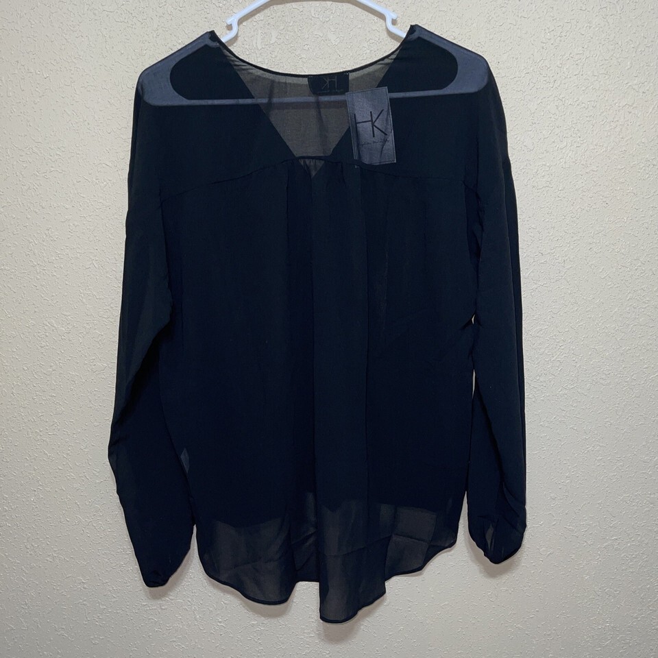 Hayden Kennedy BLACK SHEER Blouse Long Sleeve new Size SMALL