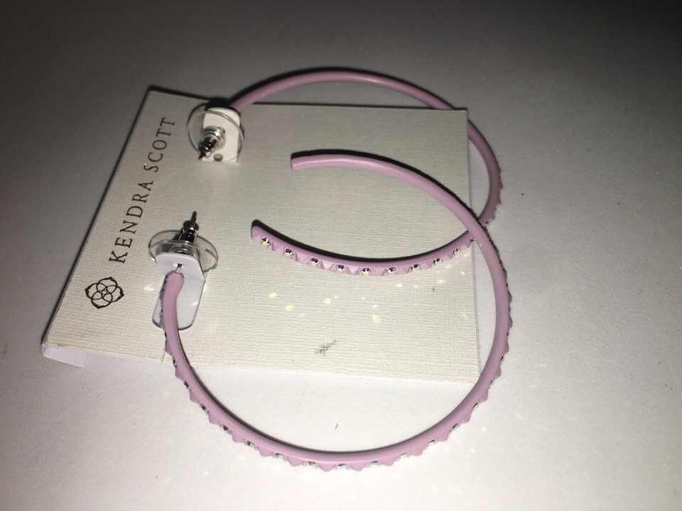 Authentic KENDRA SCOTT Val Matte Lilac Iridescent Crystal Hoop Earrings