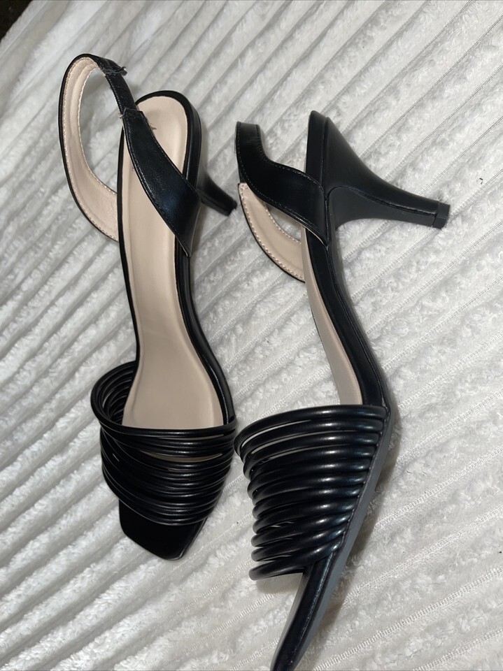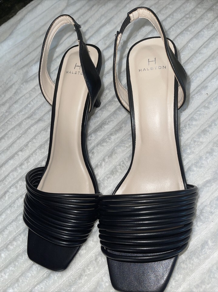 H Halston Hong Kong Sling Back Strappy Heel Sandals Shoes BLACK SZ 8.5 NEW