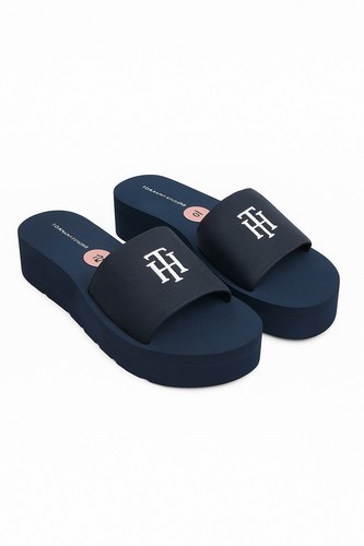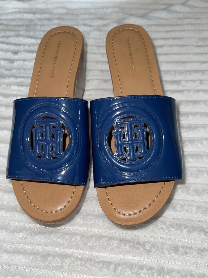 TOMMY HILFIGER Brynn Platform Wedge blue LOGO Sandal SZ 10 NEW