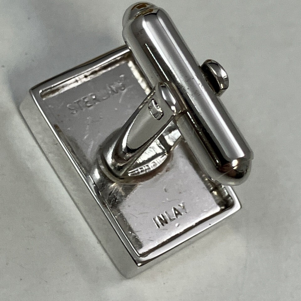 “J” Monogram Initial Letter Vintage Sterling Silver Inlay Cuff Links & Tie Pin