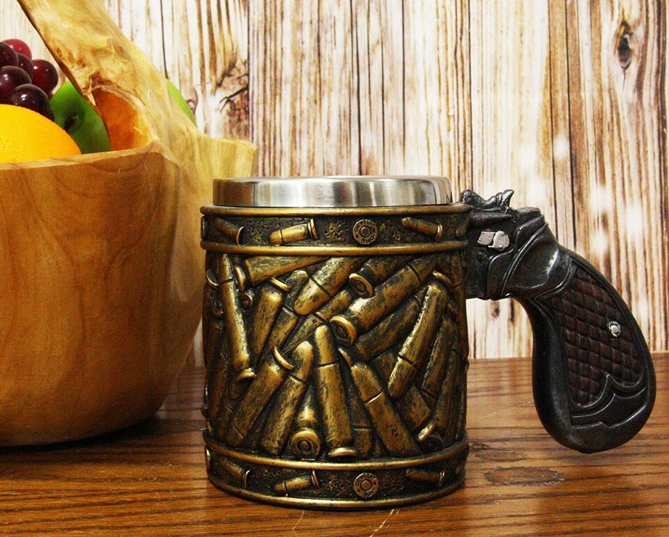 Ebros Western Pistol Gun Ammo Bullet Shells Beer Stein Tankard Coffee Cup Mug 12oz