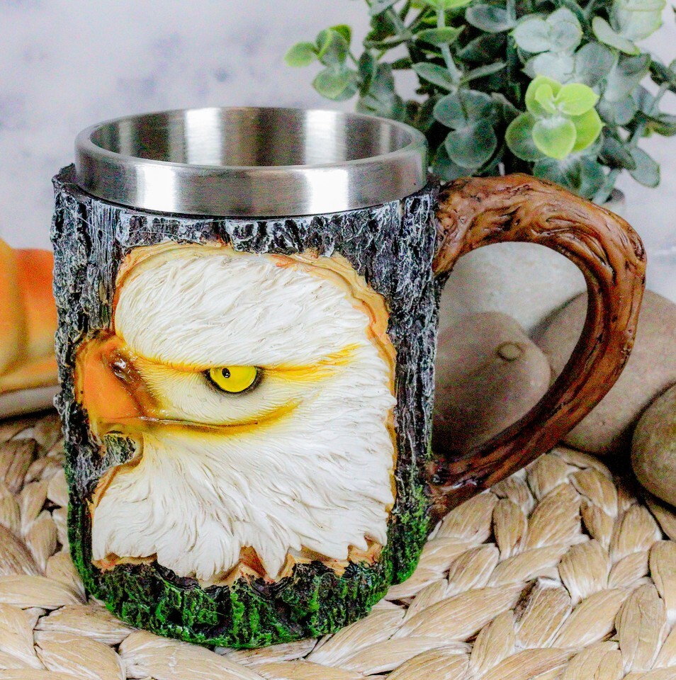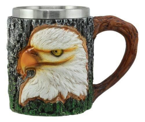 ? This Majestic Bald Eagle Mug is made of high quality resin with stainless steel liner, individually hand painted and polished. Color Tone May vary from pictures.