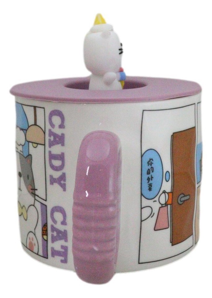 Whimsical Kitty Cat With Kung Fu Diary Cartoon Ceramic Mug With Silicone Lid