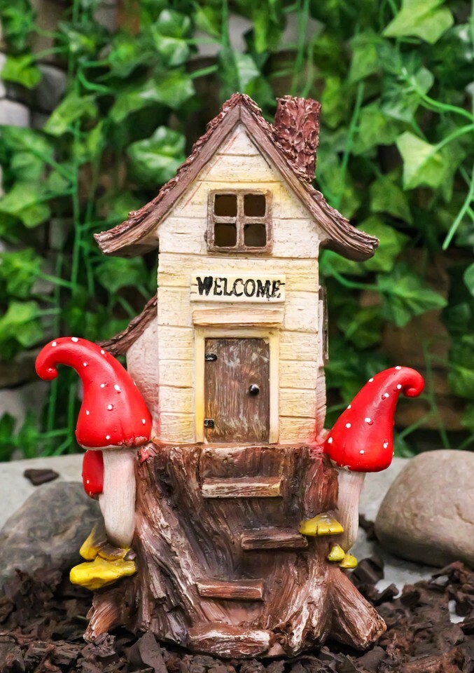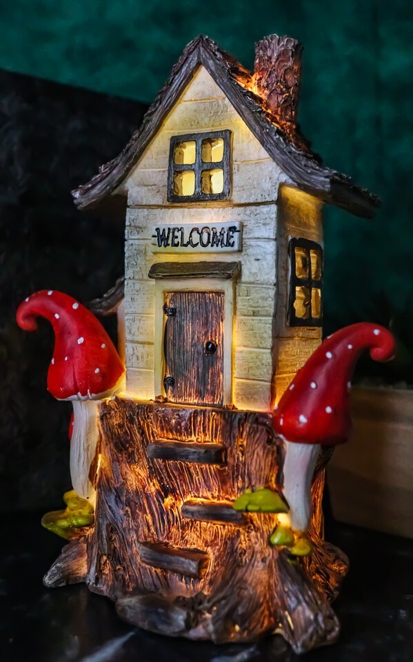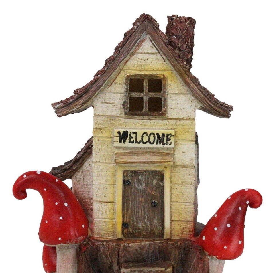 Fairy Garden LED Light Up Cottage Tree House With Toadstool Mushrooms Figurine