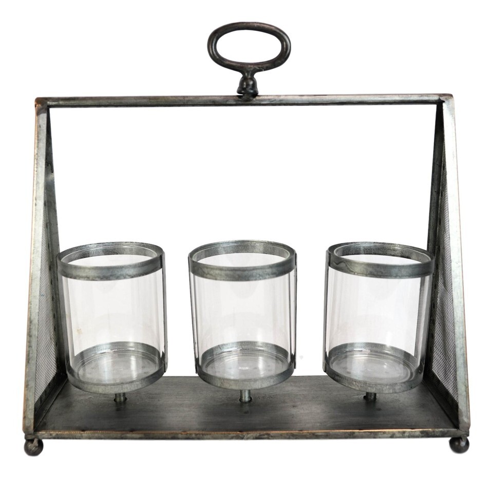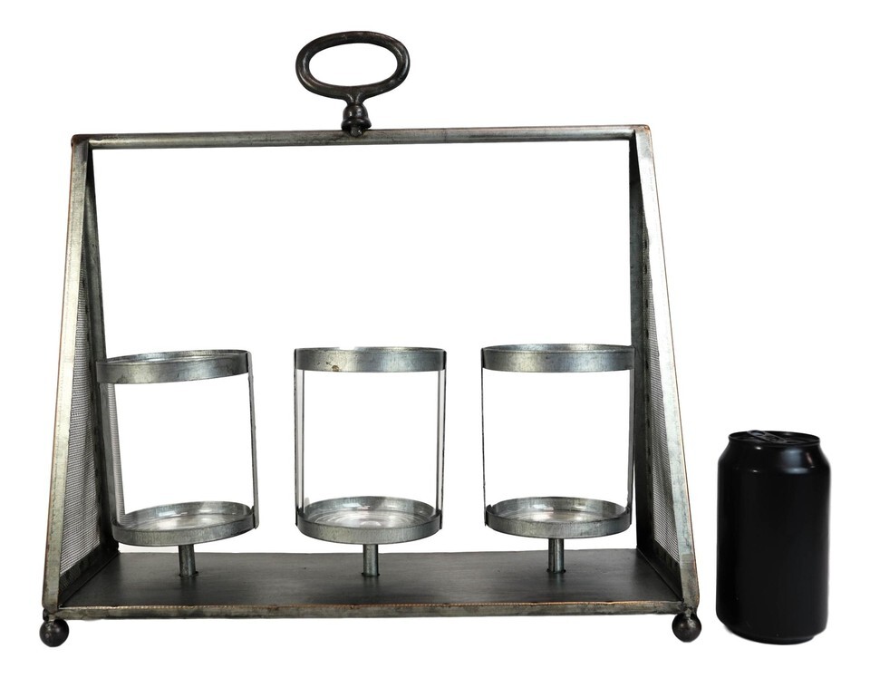 Rustic Western Farmhouse Galvanized Metal Triple Pillar Candleholder Trapezium