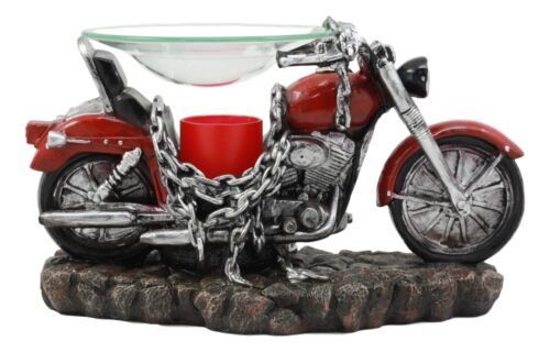 Ebros Red Vintage Motorcycle Chopper Bike Electric Oil Or Tart Burner Figurine