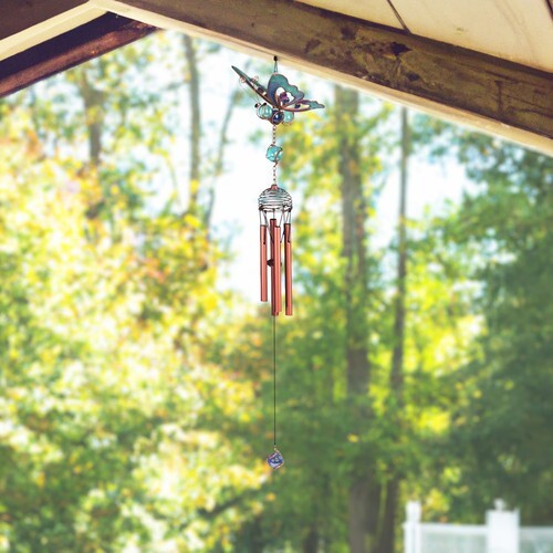 ? This beautiful butterfly wind chime also acts as a sun catcher with its stained glass wings.