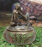 Ebros Bronzed Resin Mermaid Sitting Above Ocean Waves Small Round Trinket Box
