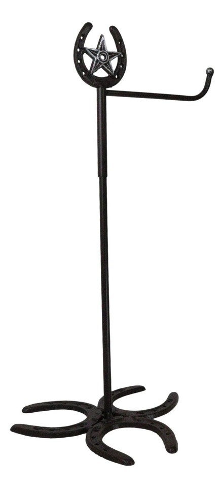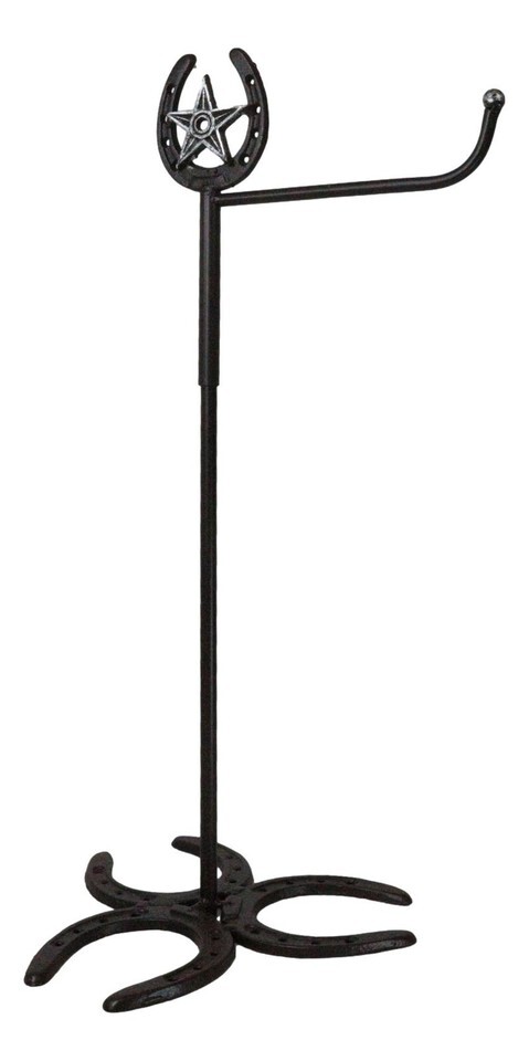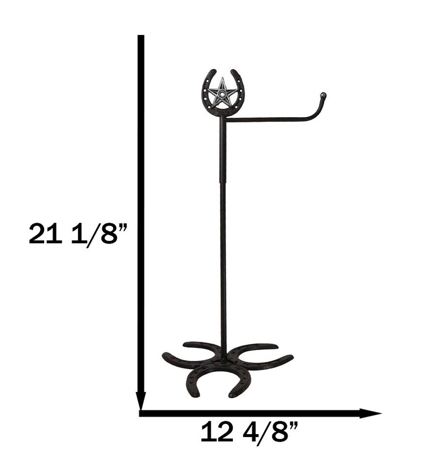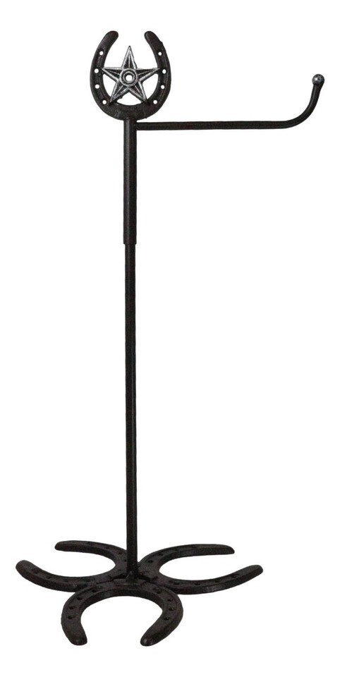 ? Elevate your bathroom decor with our Cast Iron Western Lone Star Lucky Horseshoes Cowboy Toilet Paper Holder Stand! This unique piece combines rugged charm and functionality, featuring a striking lone star design paired with lucky horseshoes. Crafted from durable cast iron, it adds a touch of Western flair to any space while ensuring your toilet paper is always within reach. Perfect for cowboys and cowgirls alike, this toilet paper holder is not just practical but a true conversation starter.