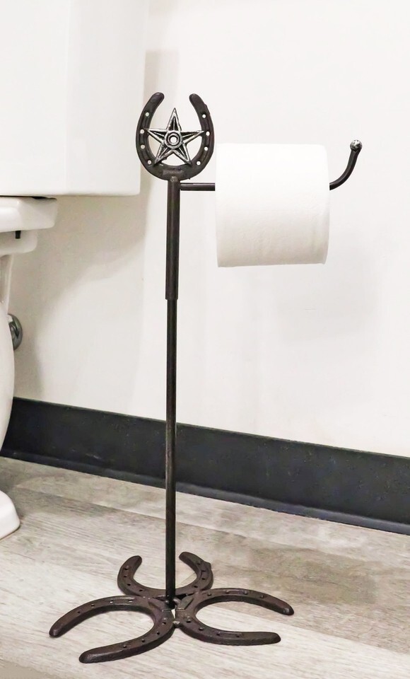 Rustic Western Lone Star Lucky Horseshoes Free Standing Toilet Paper Holder