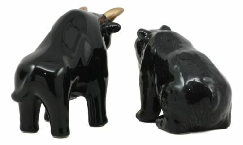 Wall Street Charging Bull Versus Angry Bear Salt And Pepper Shakers Set Ceramic