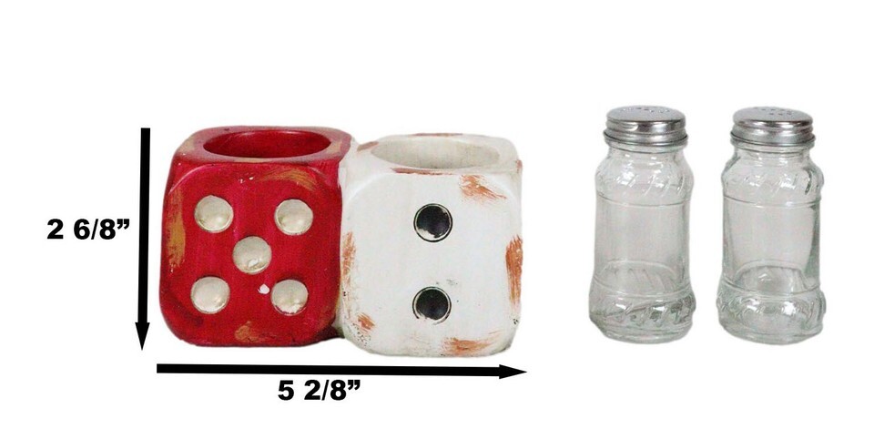 Ebros Casino Gambler Red And White Distressed Double Dice Salt Pepper Shakers Holder