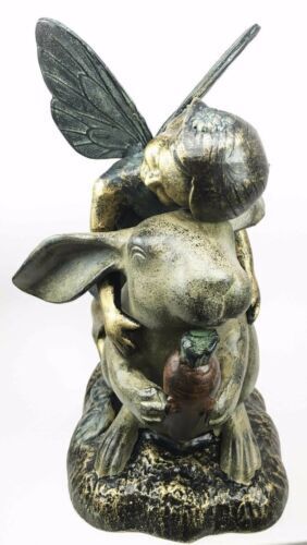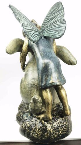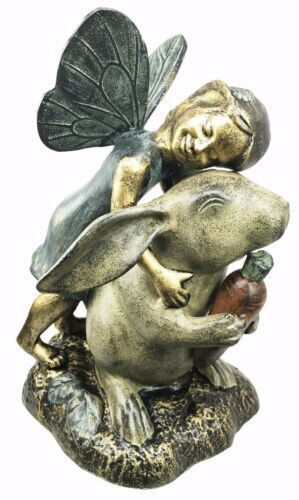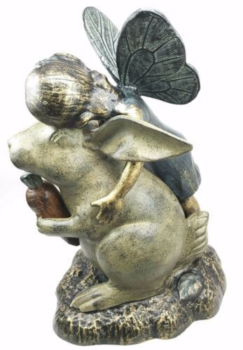Joyful Girl Fairy With Whimsical Rabbit In Wonderland Statue Elegant Home Garden