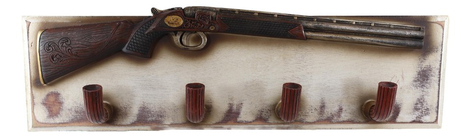 ? You can now add a rustic country touch to your room with this shotgun model prototype affixed to a wooden plank slate wall decor! On top of the stylish workmanship of the wall decor plaque, we add light duty hooks to it for you to hang towels, coats, hats or what have you!