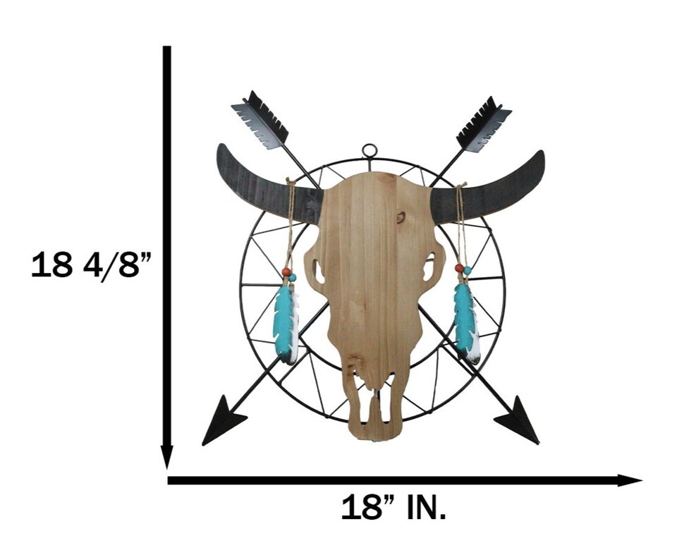 18"L Western Dreamcatcher Feathers Crossed Arrows Tribal Cow Skull Wall Decor