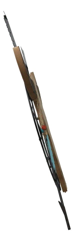 ? This Crossed Arrows Dreamcatcher Feathers Cow Skull Wall Sculpture measures 18" Wide, 1" Deep and 18.5" High. It weighs about 2 pounds.