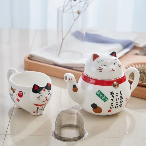 ? This Maneki Neko teapot is Japanese designed and Made in a state of the art earthenware factory in China. Our traditionally crafted teapot set is made of the highest quality ceramics available and fired at a high temperature to maximize the strength of the ceramic, making them superior to others in the market. Our ceramic is more resistant to cracks, stains, and scratches. Our ceramic is food safe and contain no lead or cadmium.