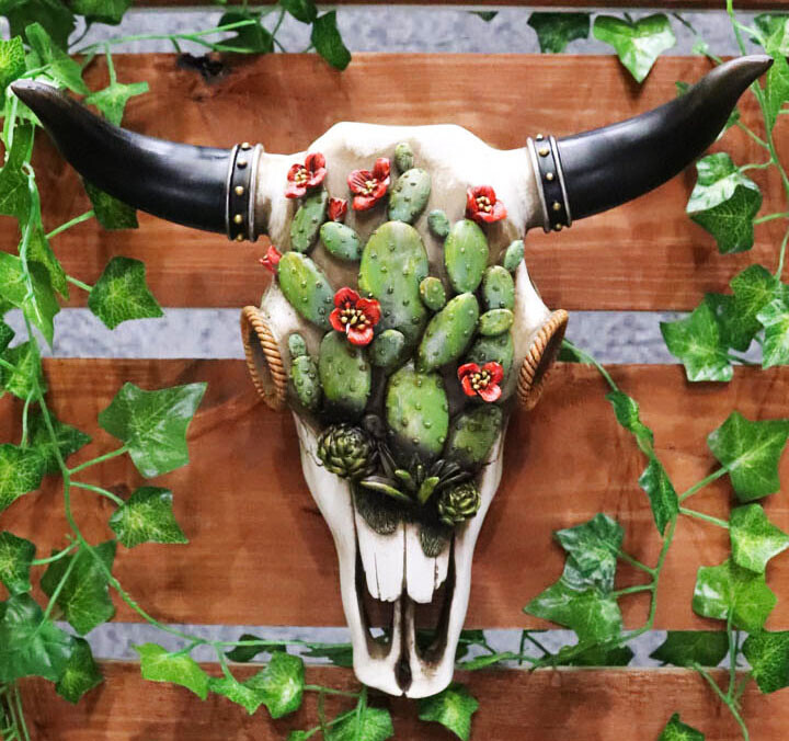 ? This Southwestern Cactus Cow Skull wall decor is made of the highest quality resin, hand painted and polished individually.