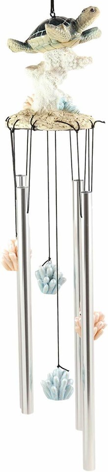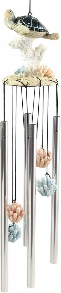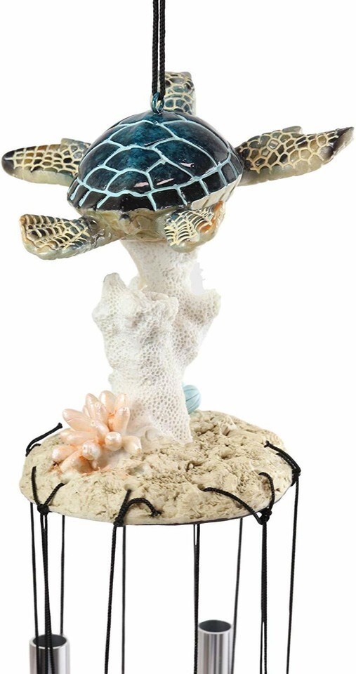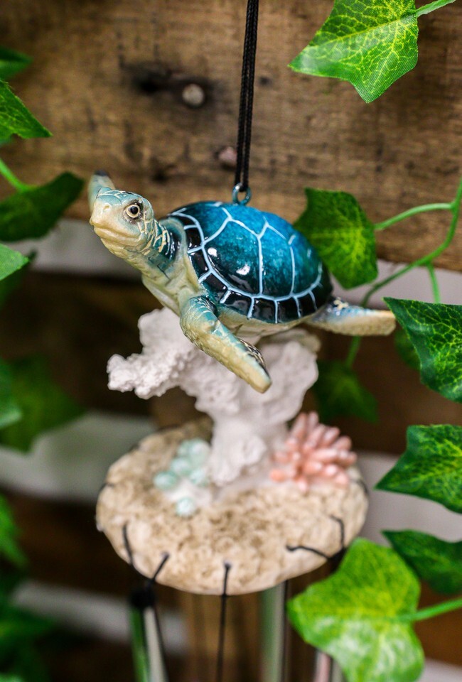 Ebros Nautical Reptile Kingdom Sea Turtle Swimming Over Corals Garden Wind Chime Decor