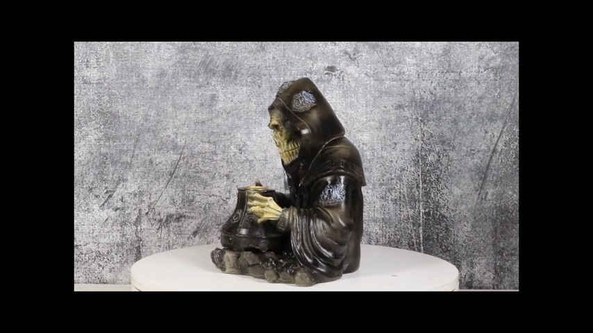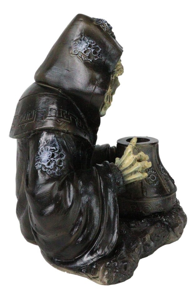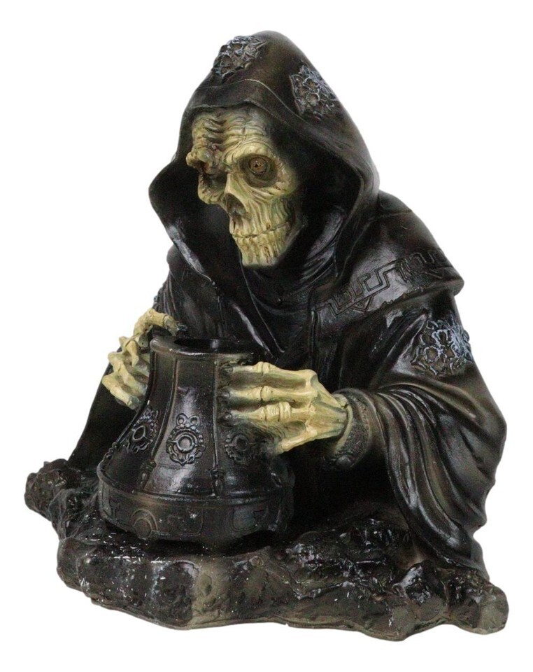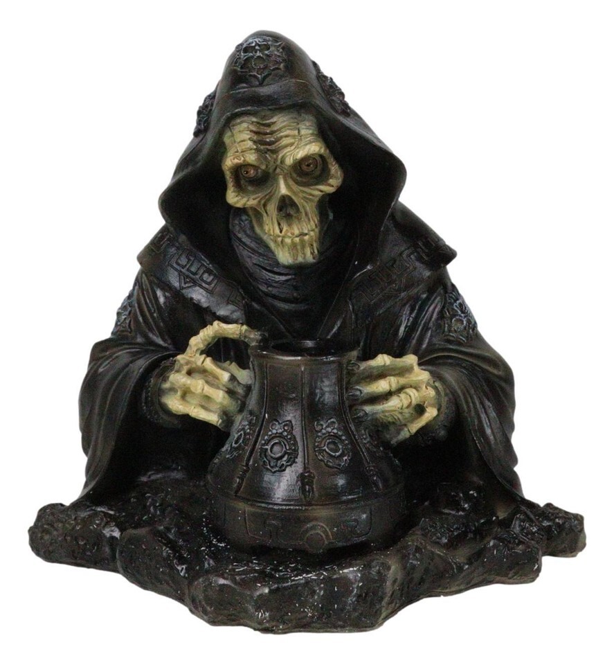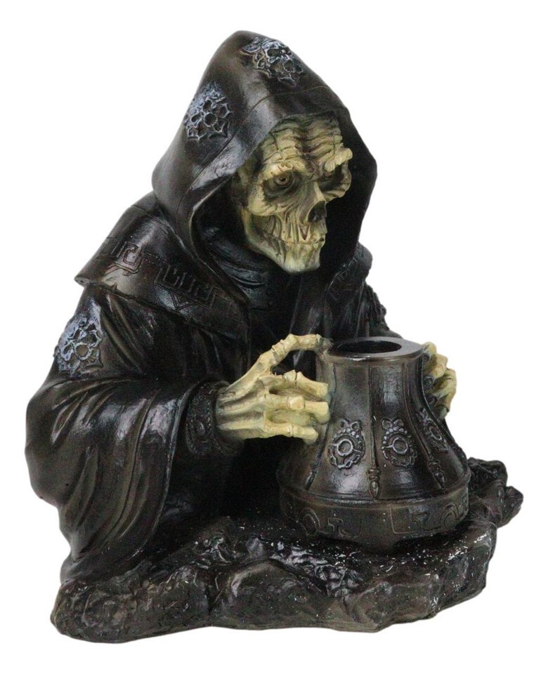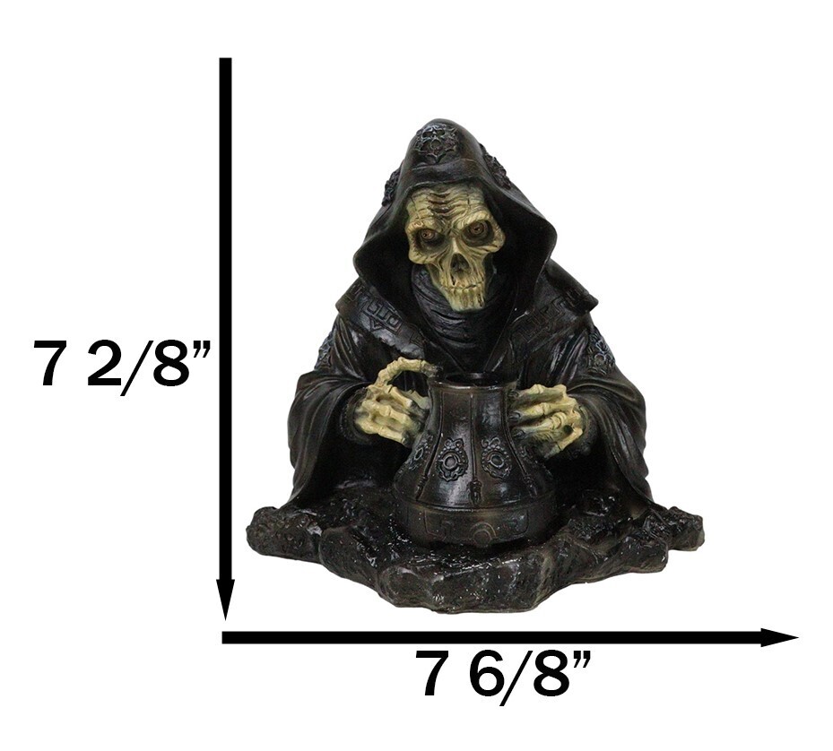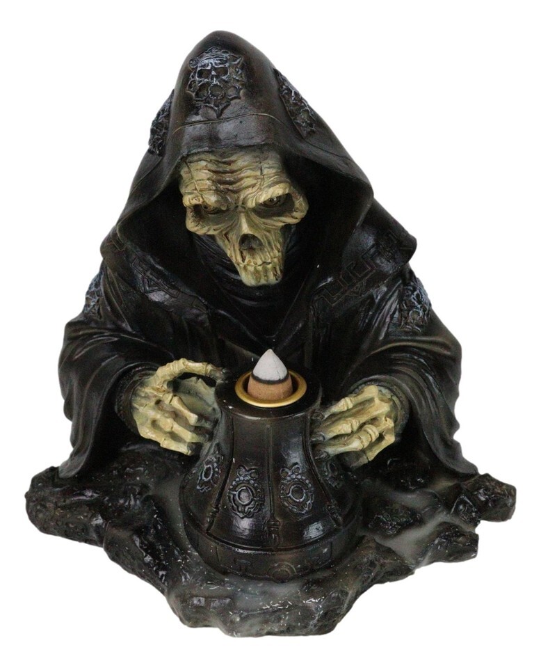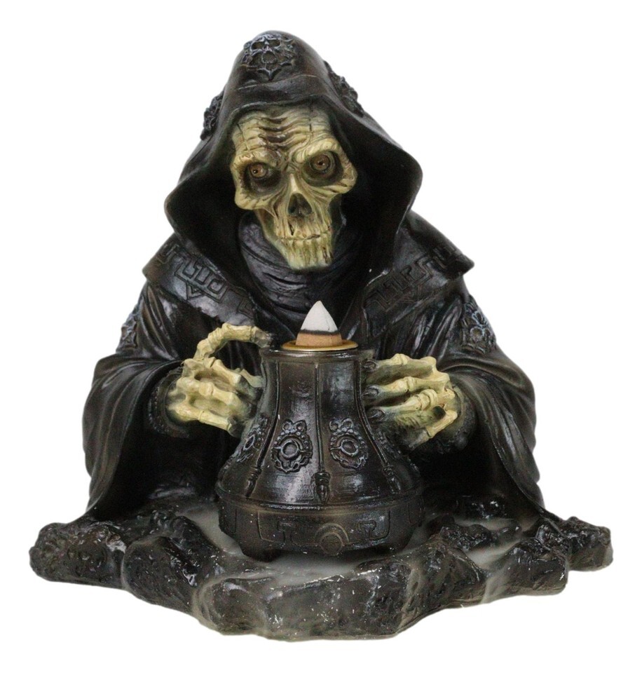 Grim Reaper Skeleton Wizard Chanting Spells Backflow Incense Cone Burner Statue