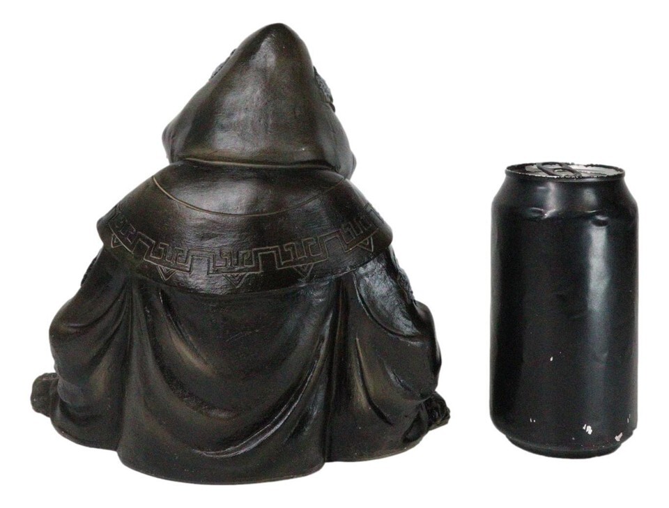 ? This Wizard Grim Reaper Spell Caster Smoking Backflow Incense Burner Sculpture measures 7.75" long, 7.25" tall and 6" wide. It weighs about 1.75 pounds.
