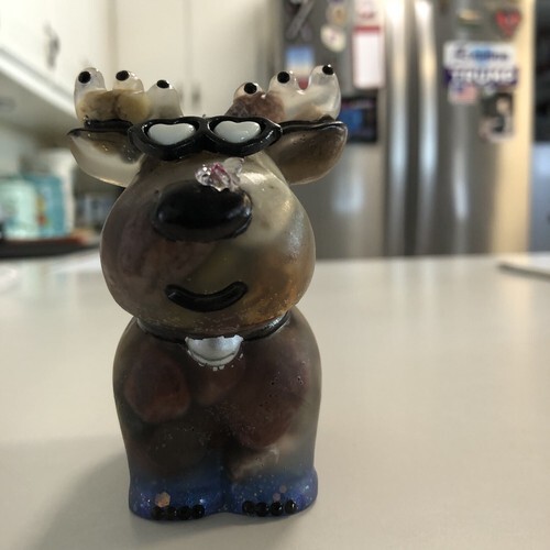? This whimsical moose figurine is made of the highest quality resin, hand painted and polished individually.