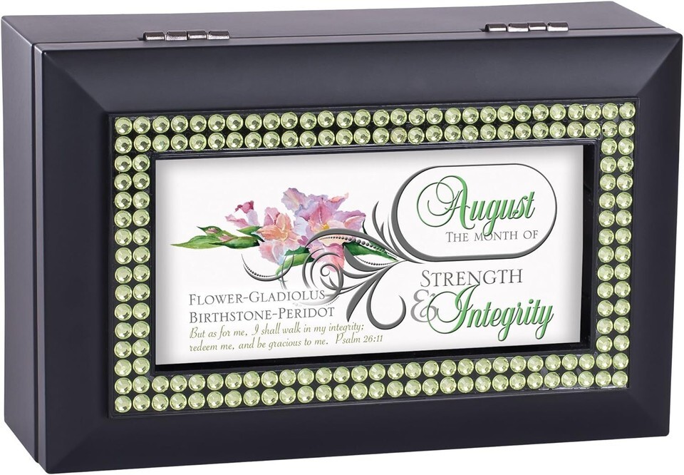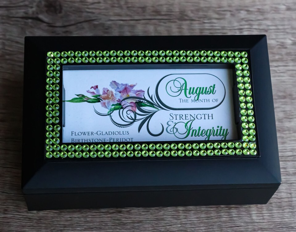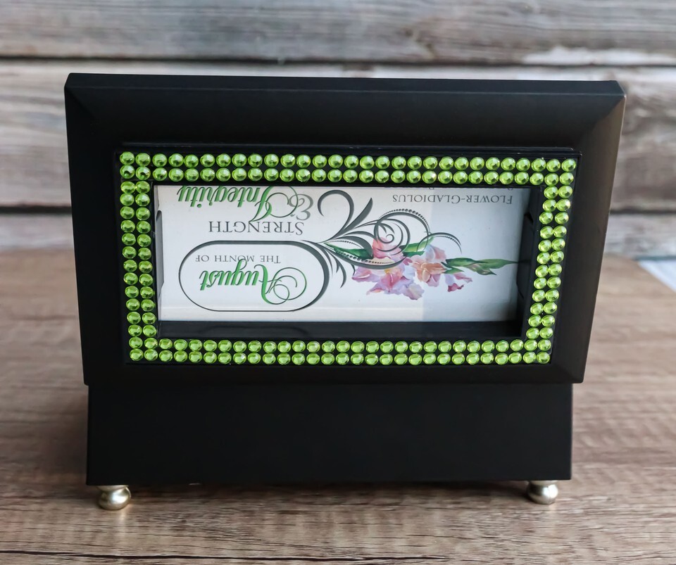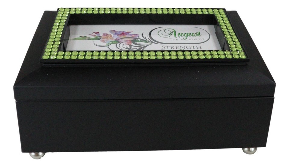 August Month Peridot Birthstone Strength And Integrity Black Musical Trinket Box