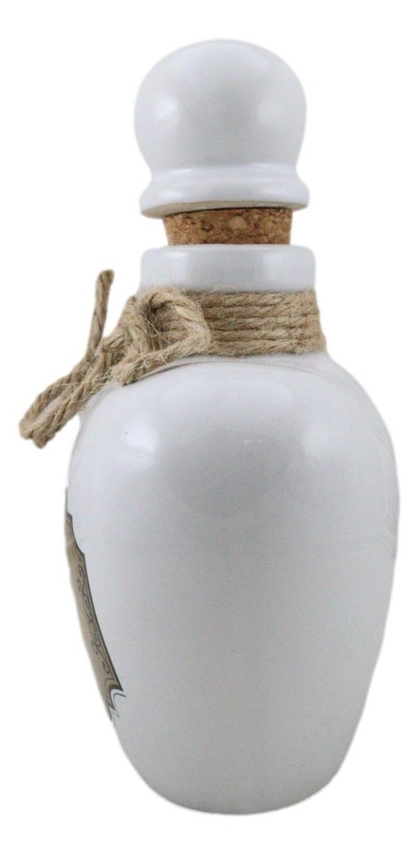 ? This apothecary witchcraft potion bottle is made of ceramic, decorated with decal sticker and cork lid with jute strings.