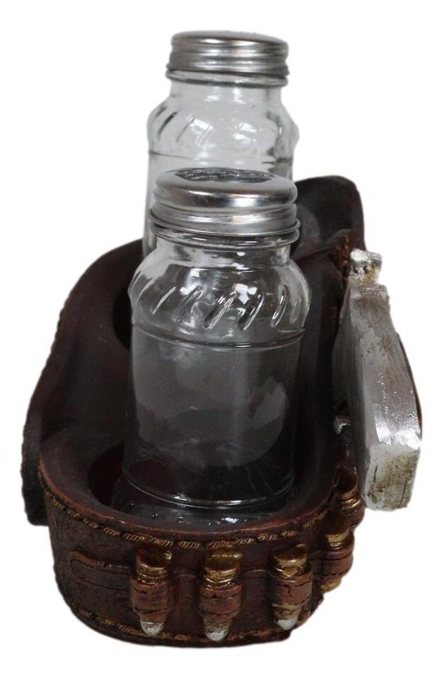 ? This Western Pistol With Holster salt pepper shakers holder set is made of polyresin, hand painted and polished individually.