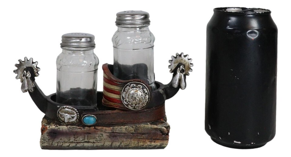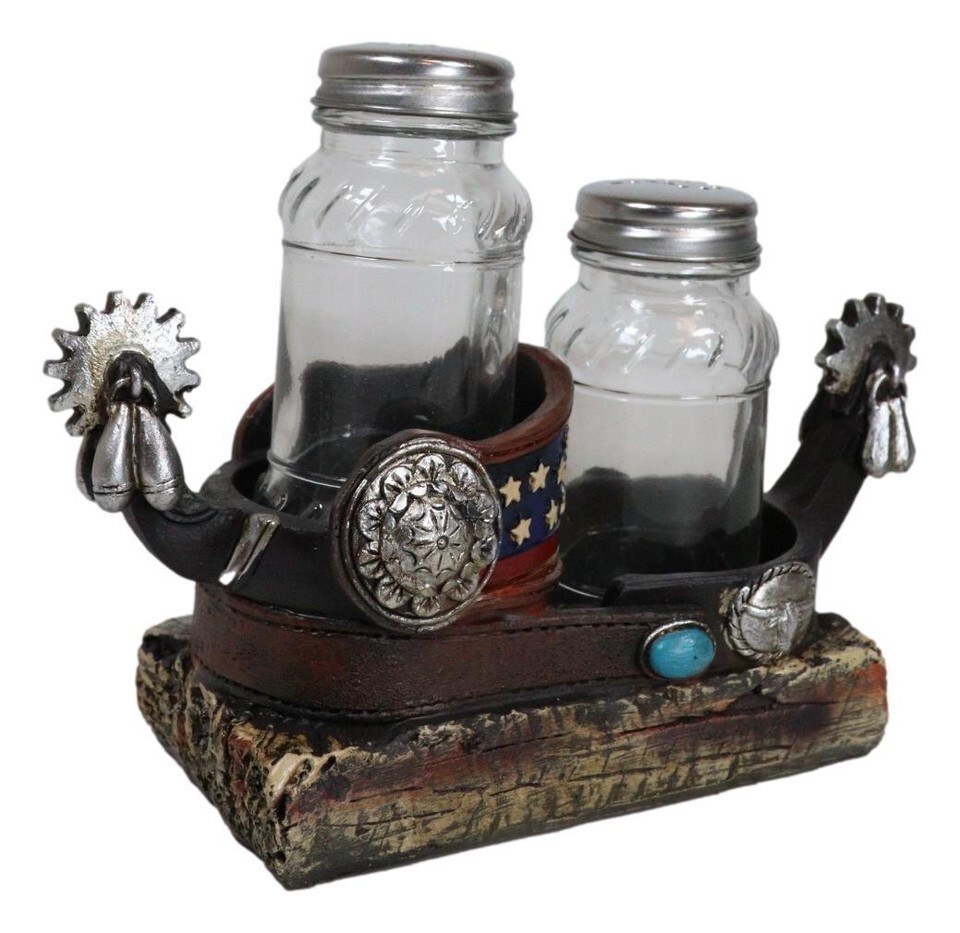 ? This Western Double Boot Spurs salt pepper shakers holder set is made of polyresin, hand painted and polished individually.