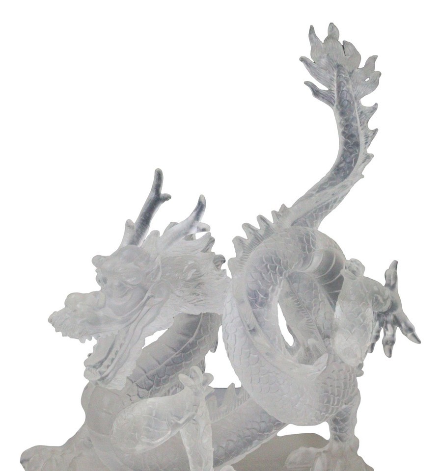 ? This Frosted Translucent Azure Chinese Dragon King Figurine is made of high quality designer acrylic resin, individually hand painted and polished in translucent finish. Color tone may vary from pictures.