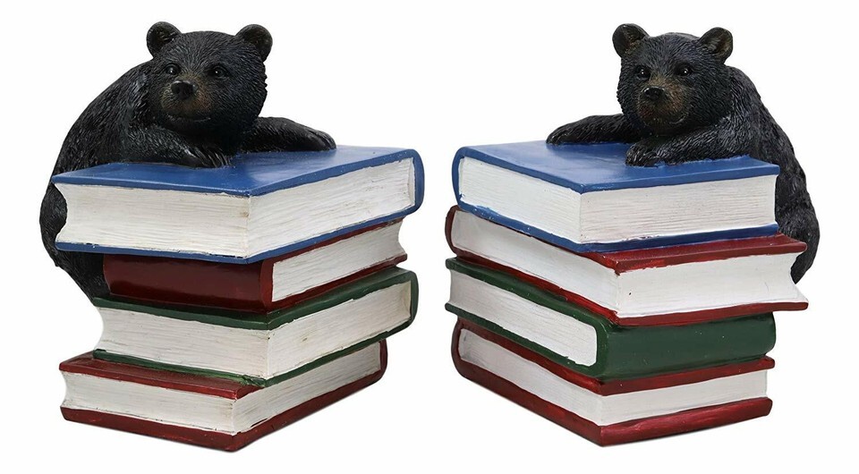 ? This Pair Of Climbing Bears Resin Bookends will accentuate any book collection with their rustic artistic value and beautiful finish. Made from resin, this bookend features a pair sibling bear cubs climbing up a stack pile of colorful books. They are perfect accents for book shelves, office desks, fireplace, mantelpiece or what have you!